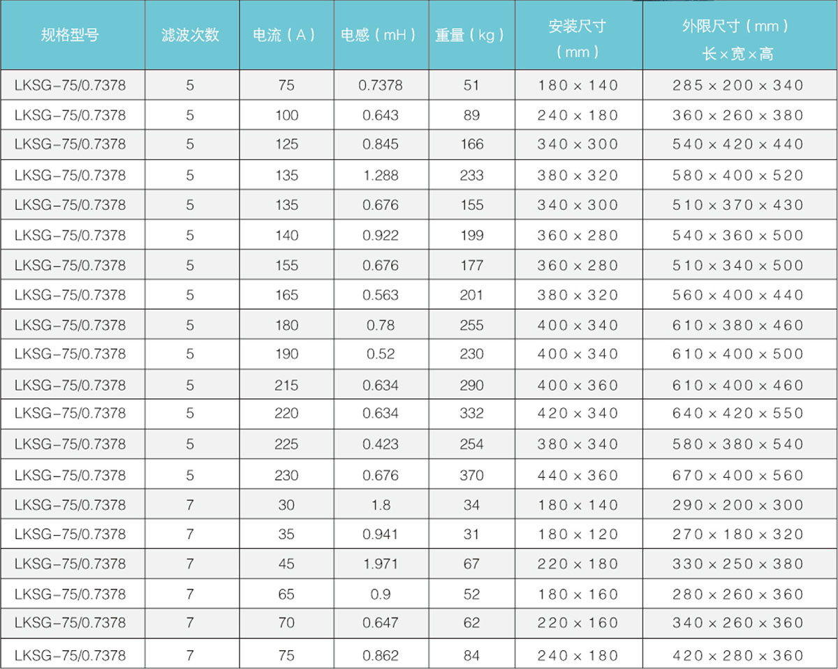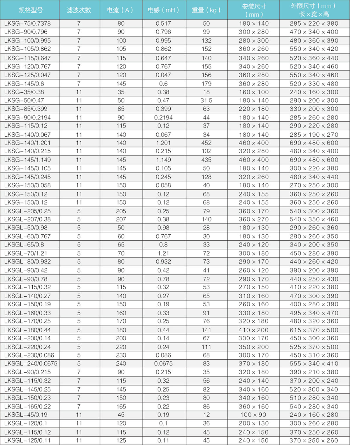 該濾波電抗器用于低壓濾波柜中,與濾波電容器相串聯,調諧至某一諧振頻率,用來吸收電網中相應頻率的諧波電流。低壓電網中有大量整流、變流、變頻裝置等諧波源,其產生的高次諧波會嚴重危害主變及系統中其他電器設備的安全運行。濾波電抗器與電容器相串聯后,不但能有效地吸收電網諧波,而且提高了系統的功率因數,對于系統的安全運行起到了較大的作用。