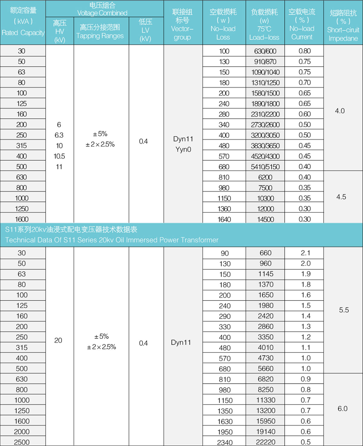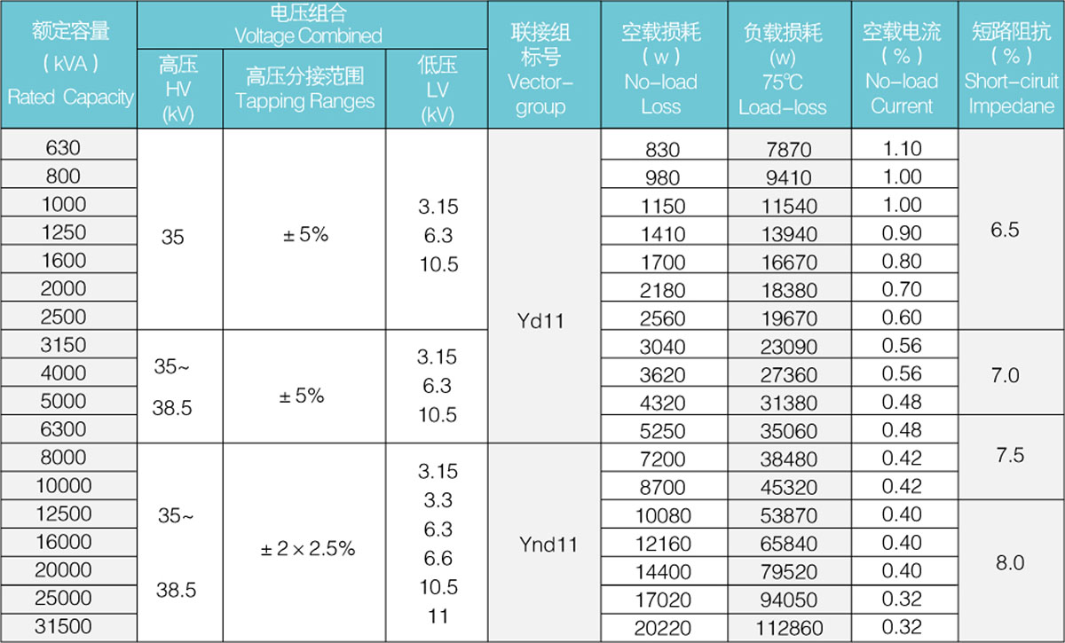 該產品執行國家標準GB1094-1996《電力變壓器》和GB/T6451-2008 《三相油浸式電力變壓器技術參數和要求》。S11系列變壓器是新系列低損耗銅繞組產品,該產品采用優良材料,在線圈器身和絕緣方面,運用新工藝、新材料、從而使空載、負載損耗明顯降低,性能和結構可靠和優良。